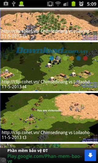 AOE Online for Android là ứng dụng tập hợp các video clip về các trận đấu AOE từ những đội tuyển và game thủ nổi tiếng nhất Việt Nam, bao gồm chimsedinang, banchym, 9x_pro và nhiều người khác.