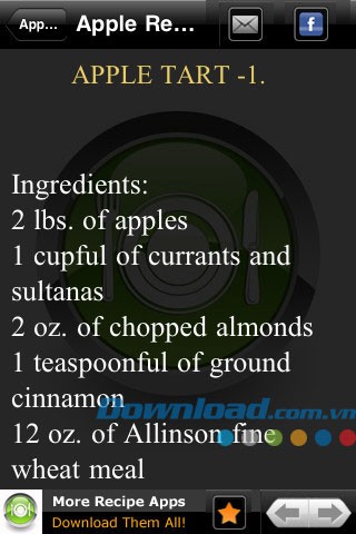 Ứng dụng cung cấp một kho tàng với hơn 80 công thức chế biến từ táo, mang đến sự đa dạng và hấp dẫn cho người dùng.