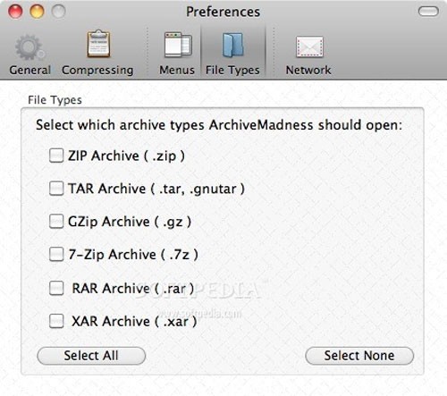 Cửa sổ Preferences cho phép bạn thiết lập các định dạng nén mặc định, tối ưu hóa quá trình lưu trữ theo nhu cầu sử dụng.