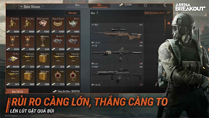 Arena Breakout VNG là một tựa game bắn súng tập trung vào yếu tố cướp bóc, nơi người chơi có thể tham gia vào nhiều nhiệm vụ đa dạng và dần dần tích lũy một kho vũ khí đáng gờm. Hiện tại, Arena Breakout VNG cung cấp hai chế độ chơi chính là và , bên cạnh đó còn có và.