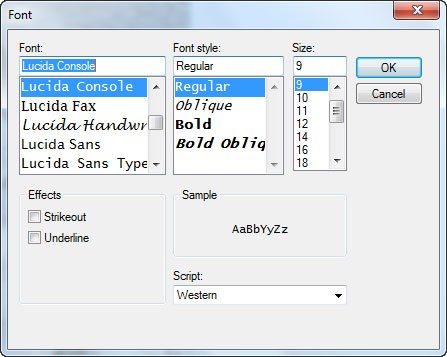 Theo mặc định, chương trình sử dụng font Lucida Console với kích thước 9 pixel để tạo ảnh ASCII. Bạn có thể thay đổi các thiết lập này bằng cách vào Edit > Fonts > Font…