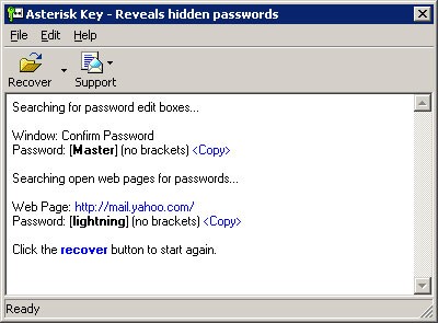 Khi cần sử dụng, bạn mở Asterisk Key và chọn hộp thoại cần khôi phục mật khẩu, Asterisk Key sẽ hoạt động như ý muốn để khôi phục mật khẩu.