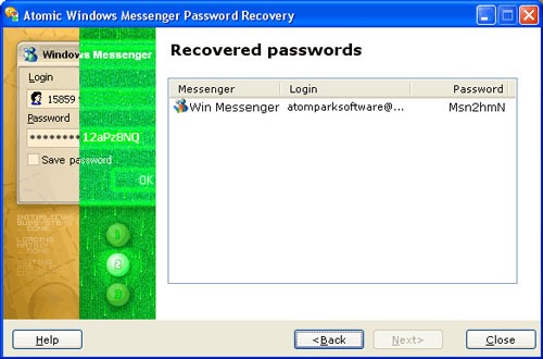 Atomic Windows Messenger Password Recovery là một ứng dụng chuyên dụng, có khả năng hiển thị ngay lập tức các thông tin đăng nhập và mật khẩu đã được lưu trữ cục bộ. Độ chính xác của phần mềm này đạt tới 100%, bất kể độ dài của mật khẩu hay phiên bản Windows Messenger đang sử dụng.