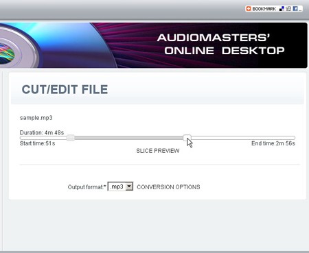 Khi các tập tin đã được tải lên thành công, lựa chọn trong phần Select Action để tiến hành biên tập file vừa tải. Các tùy chọn bao gồm Convert files để chuyển đổi định dạng (hỗ trợ xử lý nhiều tập tin cùng lúc), Merge File để ghép nối các file âm thanh, và Cut/Edit File để cắt, chỉnh sửa nội dung.
