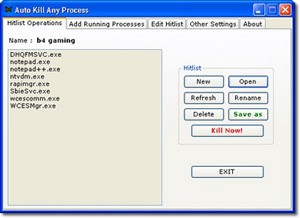 Bạn chỉ cần khởi động chương trình Auto Kill Any Process, nó sẽ tự động tắt các tiến trình đã được lưu trong file Hitlist mà người dùng đã thiết lập trước đó.