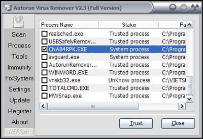 Cụ thể, Autorun Virus Remover có thể khóa cổng USB, khắc phục các lỗi hệ thống do virus gây ra, chẳng hạn như Folder Options, Task Manager, Regedit… Đồng thời, phần mềm còn hỗ trợ quản lý Process và chặn Autorun của USB chỉ với một thao tác đơn giản.