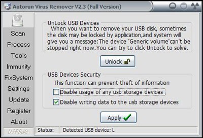 Autorun Virus Remover cho phép bạn thiết lập trạng thái của cổng USB ở chế độ chỉ đọc hoặc đọc/ghi. Ngoài ra, bạn có thể vô hiệu hóa hoàn toàn việc sử dụng các thiết bị lưu trữ USB để ngăn chặn tình trạng rò rỉ dữ liệu trái phép.