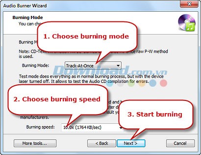 Chọn chế độ ghi phù hợp từ menu thả xuống Burning Mode.