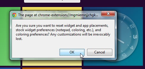 Để khôi phục trang New Tab về trạng thái mặc định, hãy nhấp vào nút Reset > OK.