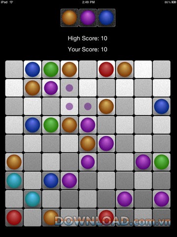 Sau mỗi lượt chơi, 3 chấm màu mới sẽ được thêm vào, trừ khi bạn thành công trong việc loại bỏ các chấm hiện có trong lượt đó.