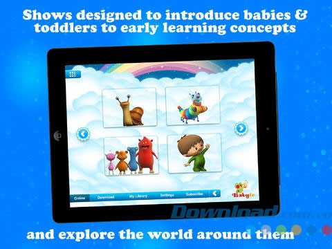 Ứng dụng giới thiệu hơn 30 nhân vật quen thuộc của BabyTV, bao gồm: