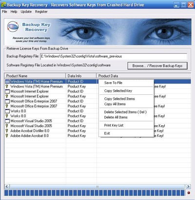 Backup Key Recovery 1.4.3 là công cụ hỗ trợ người dùng lưu trữ và khôi phục các key bản quyền của hơn 500 ứng dụng phổ biến trực tiếp trên ổ cứng.