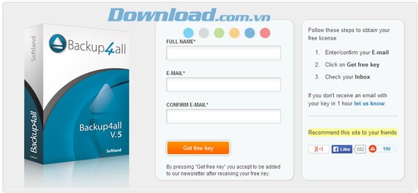 Bước 1: Truy cập đường dẫn tại đây, cung cấp thông tin tên và địa chỉ email của bạn, sau đó nhấn vào nút Get free key.