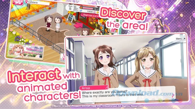 Tương tác với những nhân vật anime đáng yêu, tận hưởng những màn trình diễn nhịp điệu và những cuộc hội thoại đầy màu sắc.
