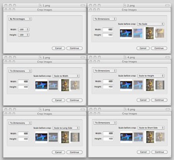 Người dùng có thể điều chỉnh chiều rộng và chiều cao một cách độc lập. Khi lựa chọn cắt theo pixel, một tùy chọn vẽ lại tỷ lệ xuất hiện, cho phép điều chỉnh trước khi cắt theo chiều rộng, chiều dài, hoặc các cạnh lớn nhất/nhỏ nhất của ảnh.