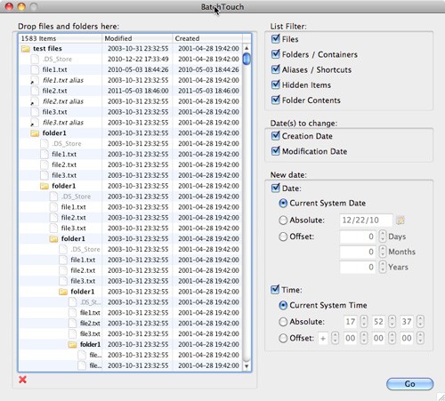 BatchTouch mang đến cho người dùng một phương thức đơn giản để điều chỉnh ngày tạo và/hoặc ngày sửa đổi của nhiều tập tin và thư mục cùng một thời điểm.