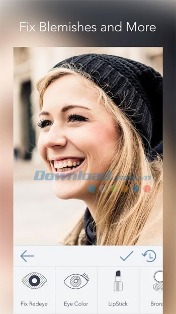 Tinh chỉnh ảnh một cách tỉ mỉ đến từng chi tiết. Khắc phục lỗi mắt đỏ, hoàn thiện ảnh chân dung bằng cách loại bỏ các khuyết điểm như vết thâm, mụn, làm sáng vùng da tối và làm trắng răng một cách tự nhiên.
