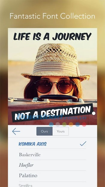 Thỏa sức lựa chọn từ vô số phông chữ có sẵn hoặc tải phông chữ yêu thích từ bộ nhớ thiết bị. Thay đổi màu sắc và thêm hiệu ứng nền để tạo nên những dòng chú thích thật ấn tượng.