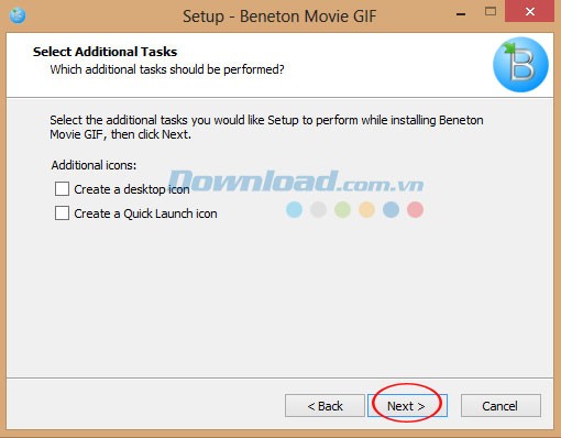 Tiếp theo, bạn có thể chọn các tác vụ bổ sung mà bạn muốn thực hiện trong quá trình cài đặt Beneton Movie GIF. Sau đó, nhấn Next.