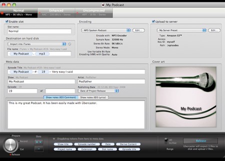 Phần mềm này hoạt động trên hệ điều hành Mac OS X, cung cấp các công cụ để thu âm giọng nói, ca hát, nhạc nền, thêm hiệu ứng âm thanh và các yếu tố khác, giúp tạo ra một buổi biểu diễn sống động. Übercaster hỗ trợ nhiều định dạng âm thanh phổ biến và khả năng mã hóa các file ở định dạng mp3, AAC, AIFF…
