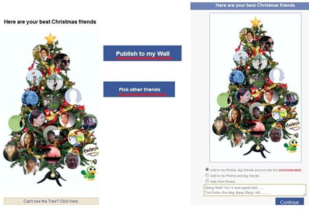 Lựa chọn Publish to my Wall sẽ tự động gắn thẻ một số ảnh bạn bè lên cây thông Noel và chia sẻ lên trang cá nhân của bạn.