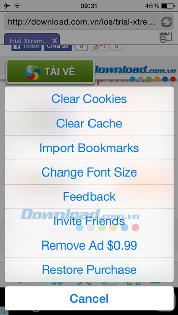 Để bảo vệ quyền riêng tư, ứng dụng cho phép xóa cookie và bộ nhớ đệm một cách dễ dàng.
