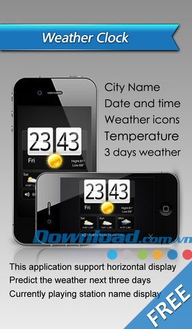 Ứng dụng tích hợp chức năng đồng hồ thời tiết tiện lợi. Khi bạn lắng nghe đài trong một khoảng thời gian nhất định, ứng dụng sẽ tự động hiển thị thông tin về thời gian, ngày tháng, tình hình thời tiết và nhiệt độ hiện tại. Đồng thời, ứng dụng còn cung cấp dự báo thời tiết cho 3 ngày tới.
