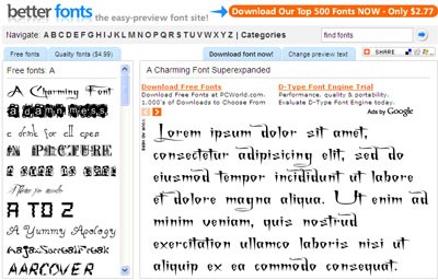 Các lựa chọn font chữ được hiển thị ở khu vực bên trái của trang web. Để đánh giá trước một font chữ cụ thể trước khi tiến hành tải, bạn chỉ cần thực hiện một cú nhấp chuột vào tên font đó.
