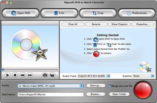 Để nhập nội dung từ đĩa DVD vào iMovie, bạn cần chuyển đổi (rip) đĩa DVD sang một trong các định dạng video được hỗ trợ bằng phần mềm Bigasoft DVD to iMovie Converter. Sau đó, bạn có thể dễ dàng nhập file đã chuyển đổi vào iMovie.