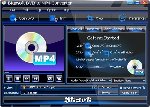 Chuyển Đổi DVD sang MP4 Hiệu Quả: Bigasoft DVD to MP4 Converter đơn giản hóa quá trình chuyển đổi DVD sang MP4, mang lại chất lượng cao với kích thước file nhỏ gọn và tốc độ nhanh.