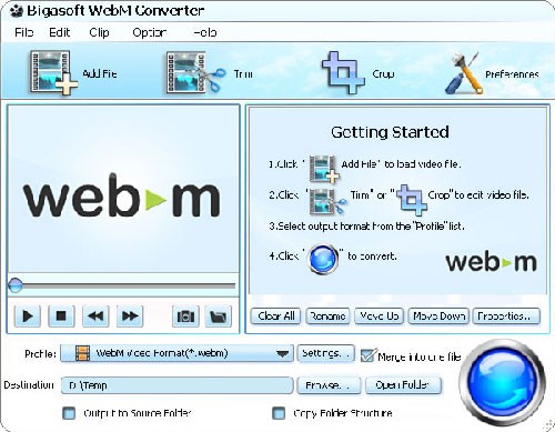 Bigasoft WebM Converter được thiết kế như một trình mã hóa WebM chuyên nghiệp, cho phép bạn tạo và mã hóa các file WebM, cũng như video VP8 phục vụ cho video HTML5 từ nhiều nguồn khác nhau.