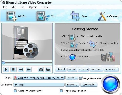 Bigasoft Zune Video Converter là một ứng dụng đơn giản và tiện dụng, được thiết kế để chuyển đổi các định dạng video khác nhau sang các định dạng tương thích với thiết bị Microsoft Zune và Zune HD. Phần mềm này cho phép bạn mã hóa lại thư viện phim ảnh của mình, bao gồm các file AVI, DivX, Xvid, MPEG, RM, MOV, 3GP, MKV, ASF, VOB, FLV, MOD sang định dạng video WMV, MPEG-4 (MP4), và H.264.