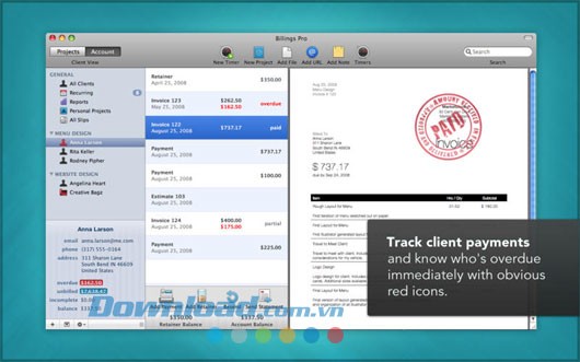 Bây giờ, bạn hoàn toàn có thể truyền tải hình ảnh chuyên nghiệp thông qua các hóa đơn, giấy tờ, hợp đồng được thiết kế riêng với Billings – phần mềm văn phòng từng vinh dự nhận giải thưởng Apple Design Awards 2009.