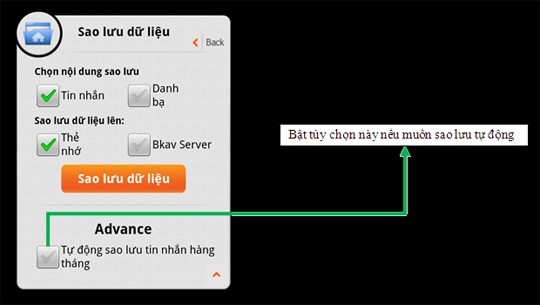 Ứng dụng cho phép người dùng sao lưu các thông tin cá nhân quan trọng (tin nhắn SMS, danh bạ) lên thẻ nhớ hoặc máy chủ trực tuyến.