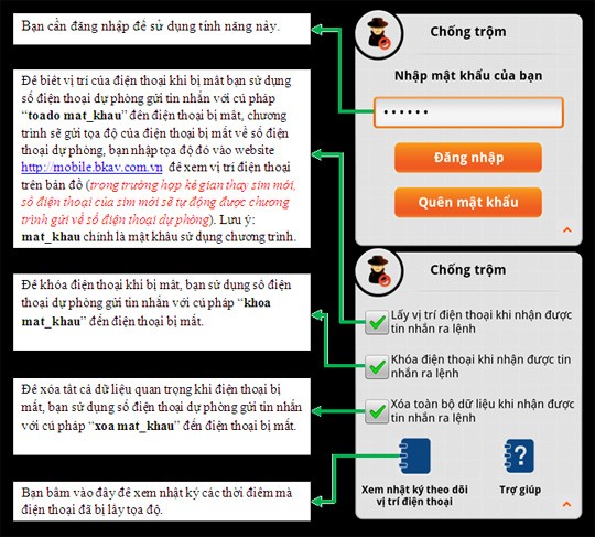 Bkav Mobile Security hỗ trợ định vị điện thoại từ xa, khóa máy và xóa dữ liệu khi bị mất. Ứng dụng còn giúp bạn phát hiện thay đổi SIM và kích hoạt báo động để tìm lại điện thoại, kể cả khi máy đang ở chế độ im lặng.