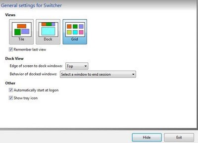 Tại giao diện chính của phần mềm, trong mục General, bạn có thể lựa chọn một trong ba chế độ hiển thị cửa sổ đang mở. Để ẩn phần mềm và đưa nó về khay hệ thống, hãy nhấn vào nút Hide.