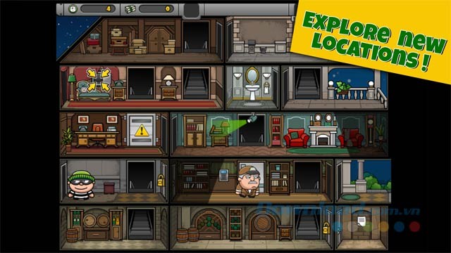 Lựa chọn bộ khóa phù hợp để mở cửa và đừng bỏ qua bất kỳ vật phẩm nào, vì chúng có thể chứa tiền mặt hoặc tài liệu quan trọng. Sau khi thu thập đủ chiến lợi phẩm, hãy nhanh chóng tìm đường thoát để hoàn thành nhiệm vụ. Bob The Robber 4 cho iOS cung cấp một cửa hàng với nhiều trang bị hỗ trợ, giúp bạn dễ dàng vượt qua các thử thách. Hãy sử dụng số vàng kiếm được để mua những vật dụng và trang phục hữu ích cho các phi vụ trộm cắp.