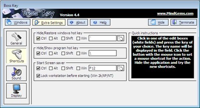 Điểm nổi bật của Boss Key là sự đơn giản và gọn nhẹ. Người dùng có thể dễ dàng ẩn bất kỳ cửa sổ ứng dụng nào đang mở chỉ bằng một tổ hợp phím tắt được thiết lập sẵn.
