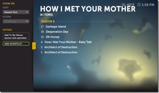 Nhấp vào TV shows để chọn các chương trình truyền hình yêu thích. Chọn TV Show Library để xem danh sách các chương trình phổ biến. Nhấp vào một series để xem danh sách các tập phim. Chọn Add To My Shows để thêm chương trình vào thư viện và tự động xếp hàng các tập mới.