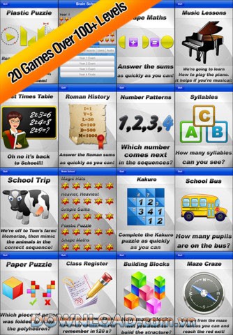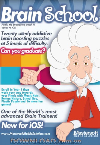 Brain School for iOS là một ứng dụng tổng hợp 20 trò chơi trí tuệ đa dạng, cung cấp hơn 100 level đầy thử thách, được thiết kế đặc biệt cho các thiết bị iPhone/iPad.