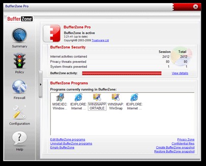 BufferZone Pro mang đến giải pháp bảo vệ toàn diện, cho phép bạn thoải mái duyệt web, tải dữ liệu, mở các tập tin đính kèm từ email, chia sẻ thông tin và giao dịch trực tuyến một cách an tâm. Thông tin cá nhân của bạn sẽ được bảo mật, ngăn chặn mọi kết nối tới các trang web tiềm ẩn mã độc.