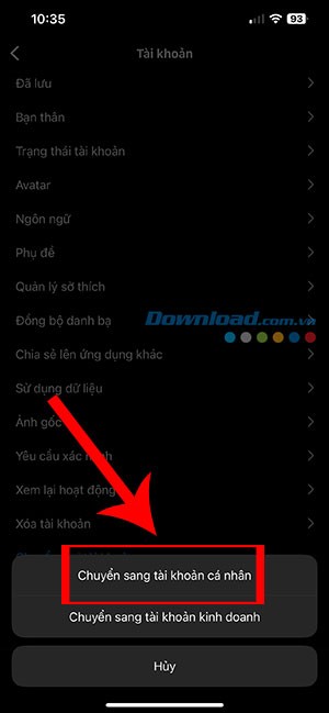 Bước 4: Chọn Chuyển sang tài khoản cá nhân để tắt chế độ tài khoản chuyên nghiệp.