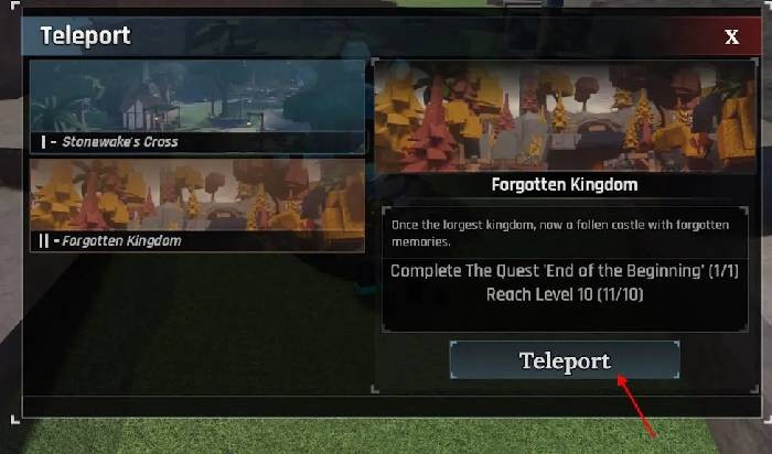 Làm thế nào để dịch chuyển đến Vương quốc Quên lãng (Forgotten Kingdom) sau khi đã tạo cổng?