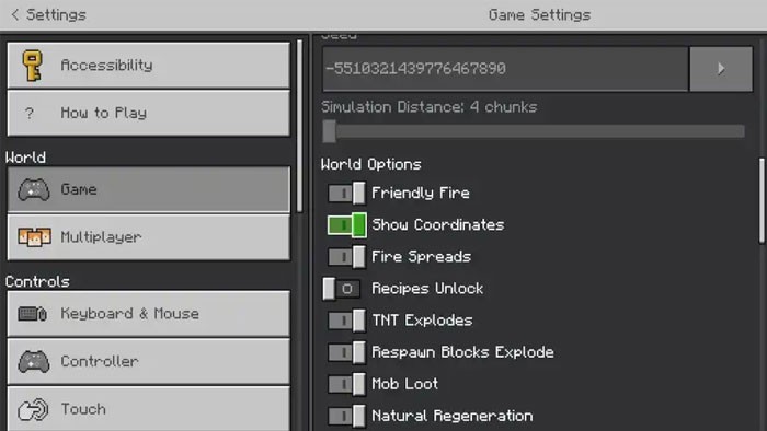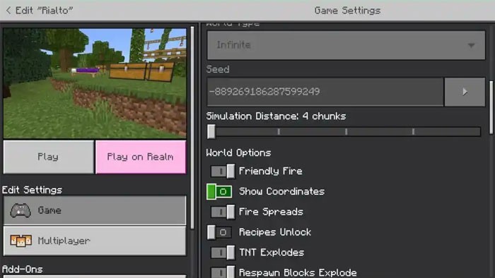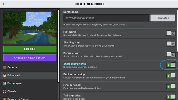 Có hai cách để kích hoạt hiển thị tọa độ trong Minecraft Bedrock: cấu hình trước khi bắt đầu thế giới mới hoặc bật/tắt trong menu cài đặt trò chơi khi đang chơi.