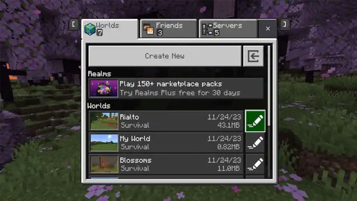 Để bật tọa độ trong thế giới đã có trước khi vào chơi, hãy nhấp vào biểu tượng cây bút chì ở bên phải tên thế giới. Thao tác này sẽ đưa bạn đến màn hình chỉnh sửa thế giới.