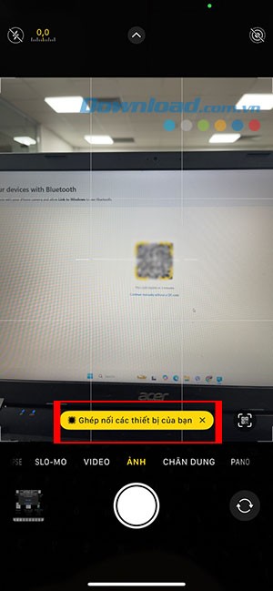 Phone Link sẽ hiển thị một mã QR. Hãy sử dụng camera trên điện thoại để quét mã QR này và chạm vào nút Ghép nối các thiết bị của bạn.