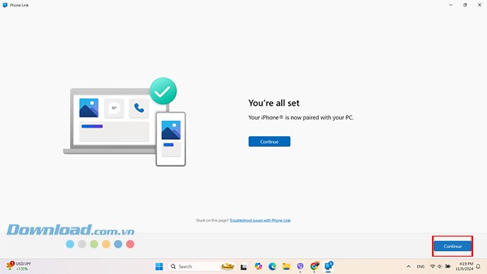 Quay trở lại Phone Link trên máy tính và nhấn Continue.