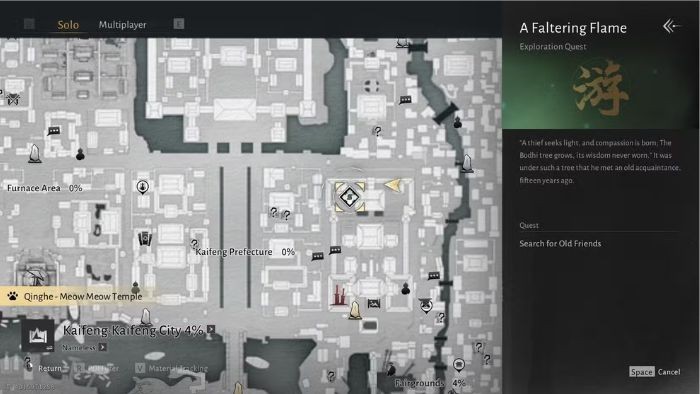 Nhiệm vụ A Faltering Flame tương đối đơn giản, khác với nhiều nhiệm vụ phức tạp khác trong Where Winds Meet. Trong quá trình thực hiện, game thủ chỉ cần hỗ trợ nhà sư trong chùa tìm lại các đệ tử của mình tại Grand Temple và sắp xếp lại vị trí các ngọn đèn của họ.