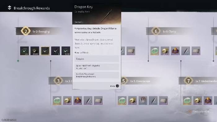 Dragon Key đầu tiên và dễ dàng nhất để sở hữu là phần thưởng khi vượt qua mốc Breakthrough ở Solo Mode Level 2: Emerging. Điều kiện để mở mốc này là nhân vật Solo Mode phải đạt Level 15.