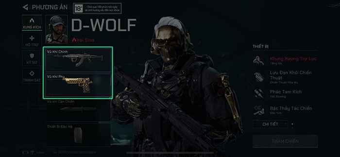 Bước 2: Lựa chọn class nhân vật và vũ khí mà bạn mong muốn sử dụng.